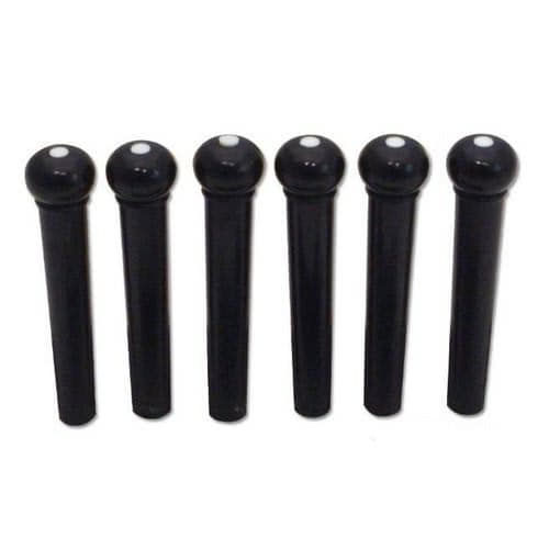 Комплект 6 шт. высококачественных пластиковых клиньев для фиксации струн на акустической гитаре. Цвет черный, белая точка на головке.