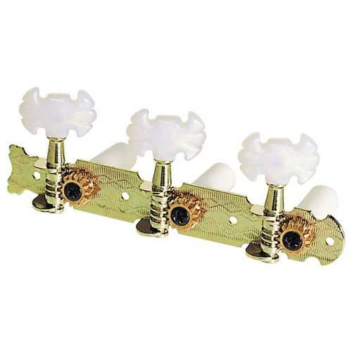 Комплект высококачественных стандартных колков для классической гитары, фигурные ручки из белого пластика, покрытие золотистого цвета.