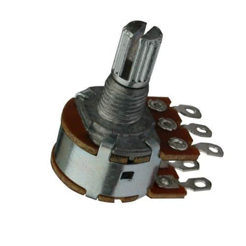Данный тип потенциометров применяется в электро- и бас-гитарах для плавной регулировки баланса уровней сигналов, например, между двумя звукоснимателями. Характеристика А (логарифм), сопротивление 500 Ком.