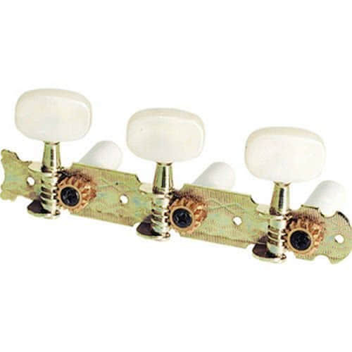 Комплект высококачественных стандартных колков для классической гитары, ручки из белого пластика, покрытие золотистое.