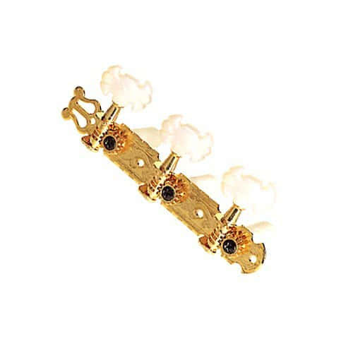 Комплект высококачественных стандартных колков для классической гитары, фигурные ручки из белого пластика, покрытие золотистого цвета.