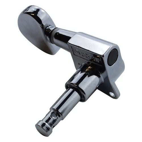 Литые закрытые колки для электрической или акустической гитары, конфигурация 3+3, крепешное ушко с диагональным расположением. На данной модели применены штоки EZ Lock, которые имеют два перпендикулярных отверстия, позволяющие наиболее надежно зафиксировать струну.