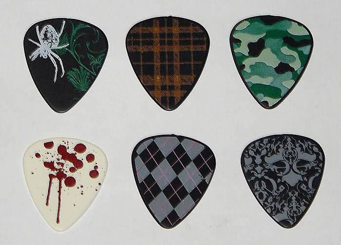 Гитарный медиаторы с графикой в ассортименте.