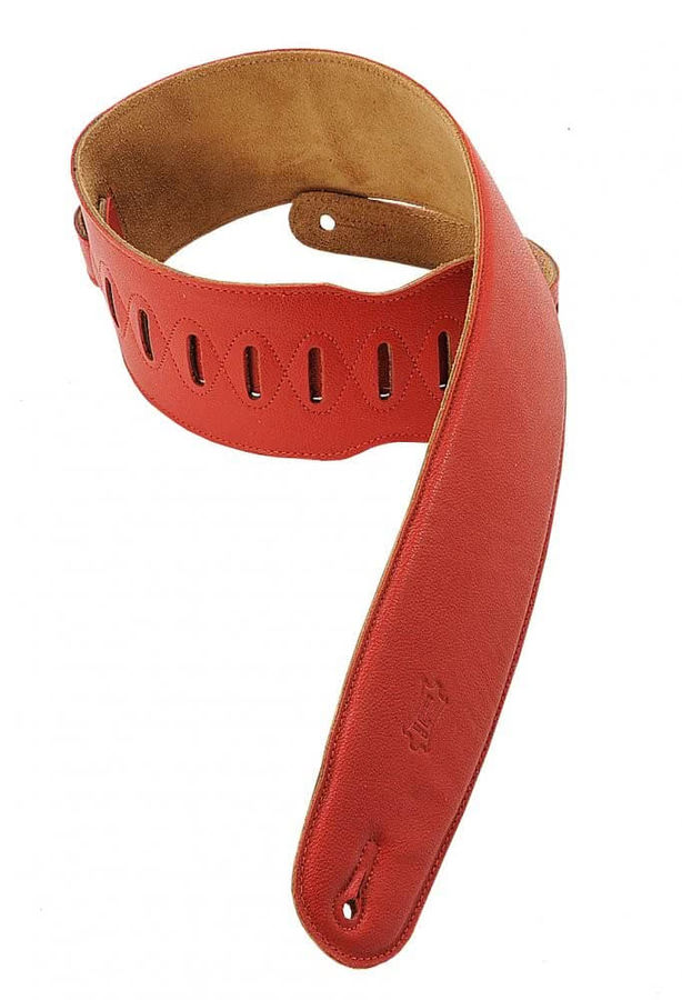 Levy's M4GF RED XL кожанный ремень для бас гитары с пенной набивкой, нижняя сторона из замши, цвет красный, ширина 8,9 см, регулировка длины от 91,5 см до 162,5 см