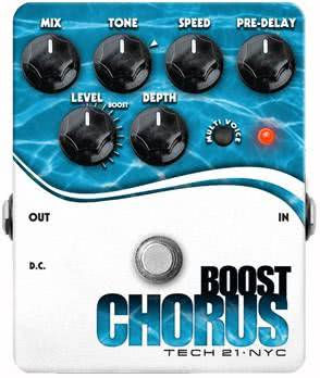 Boost Chorus Tech21 гитарная педаль аналоговый хорус с бустером, ручки Mix, Tone, Speed, Detune, Level/Boost, Depth, переключатели Bypass (ножной) и Multivoice