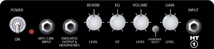 Усилитель мощности HT-1 - маломощный гитарный усилитель, с двухкаскадной схемой, который производит звучание традиционного выходного каскада на 100 Вт, но в намного более низком уровне громкости. Это достигнуто при помощи двойного триода ECC82 в двухкаскадной конфигурации, с мощностью 1 ватт, которая богата ламповыми гармониками и компрессией, получаемый звук полный и качественный даже на самом низком уровне громкости.