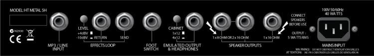 HT-METAL 5 Head - маломощный гитарный усилитель, с двухкаскадной схемой, который производит звучание традиционного выходного каскада на 100 Вт, но в намного более низком уровне громкости. Это достигнуто при помощи двойного триода 12BH7 в двухкаскадной конфигурации, с мощностью 5 ватт, которая богата ламповыми гармониками и компрессией, получаемый звук полный и качественный даже на самом низком уровне громкости.