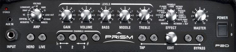 PRISM20 Гитарный комбо 15 Вт, динамик Custom Designed 8" , проц. эфф. студ. кач. и моделир. гитарн. усил., тюнер, CD вход. размеры 340x358x231 мм, вес 8.5 кг.