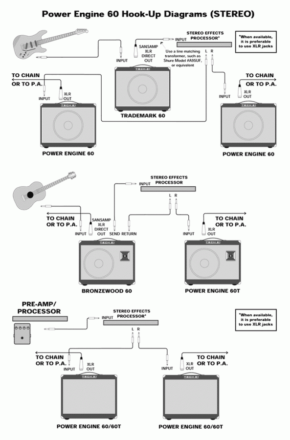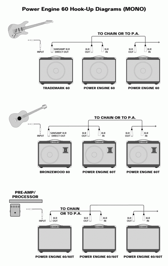 Эти кабинеты, разумеется, отлично работают в паре с линейкой комбиков Trademark. Power Engine принимает сигнал по входам XLR и 1/4" (6,3 мм) джек и имеет балансный XLR-выход для каскадного подключения других Power Engine. Зная что не все комнаты имеют идеальный акустический дизайн, мы добавили 3-полосный эквалайзер чтобы Вы могли компенсировать недостатки окружения.