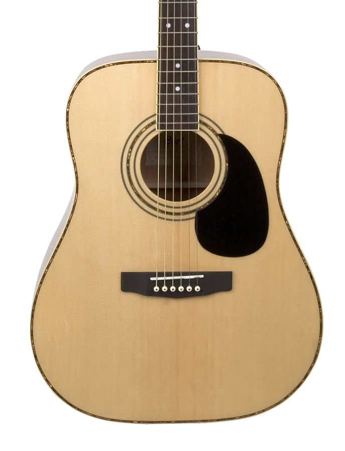| Корпус | форма дредноут, верхняя дека из ели, нижняя дека и обечайка из красного дерева |