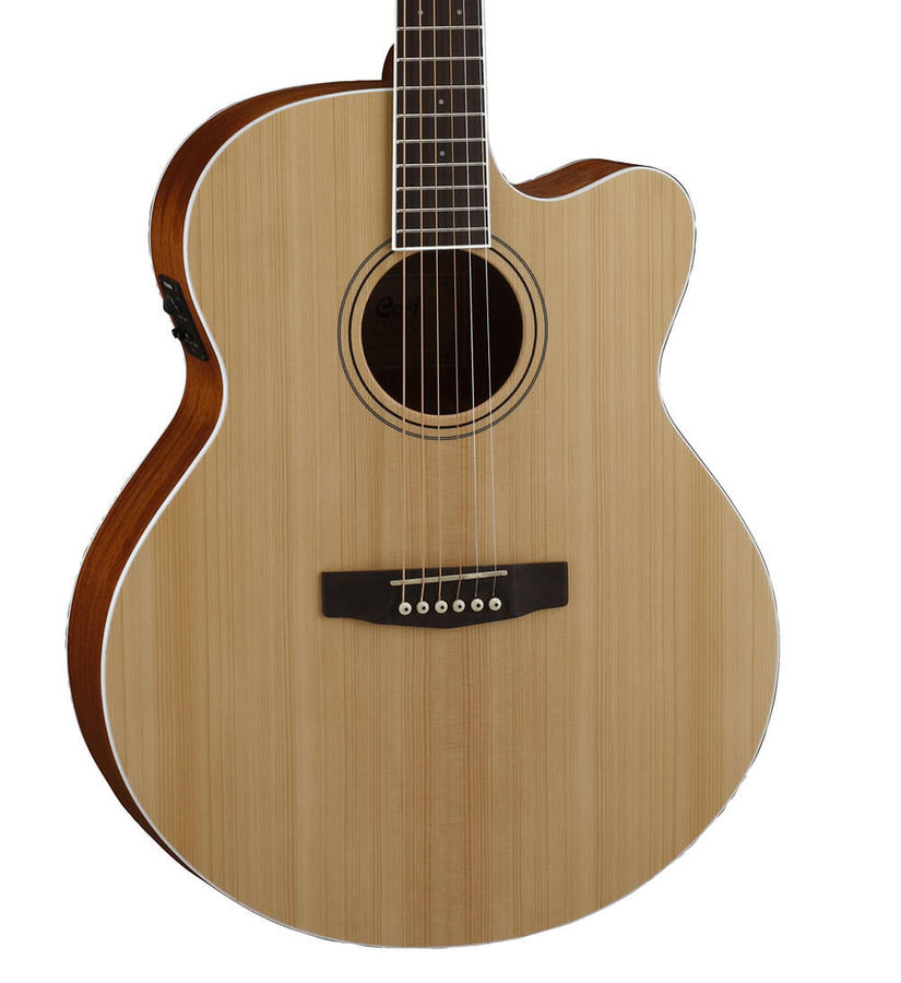Электроакустическая гитара Cort CJ1F входит в серию профессиональную серию гитар CJ. Если Вам нужно большое, полное звучание, то гитара CJ1F создана для Вас. С корпусом классической формы джамбо гитара CJ1F предлагает характерное звучание джамбо. Акустические гитары серии CJ имеют полноразмерный корпус джамбо и такое же "большое" звучание, которое создает этот корпус.