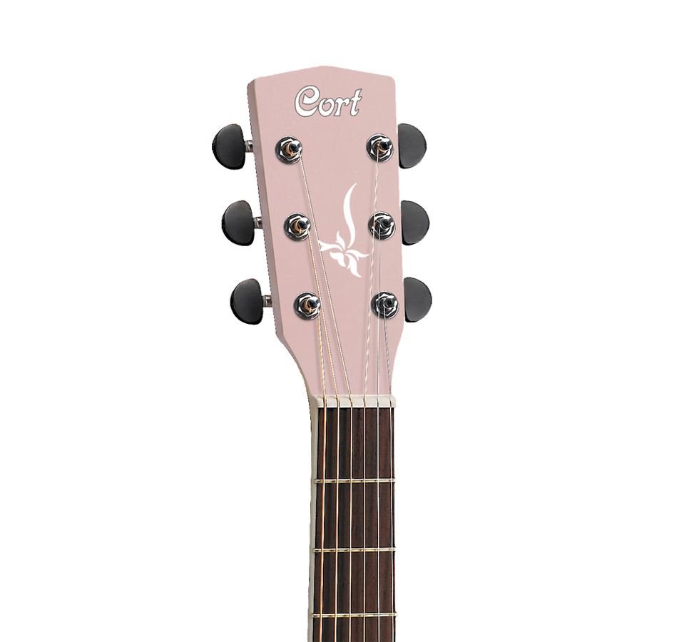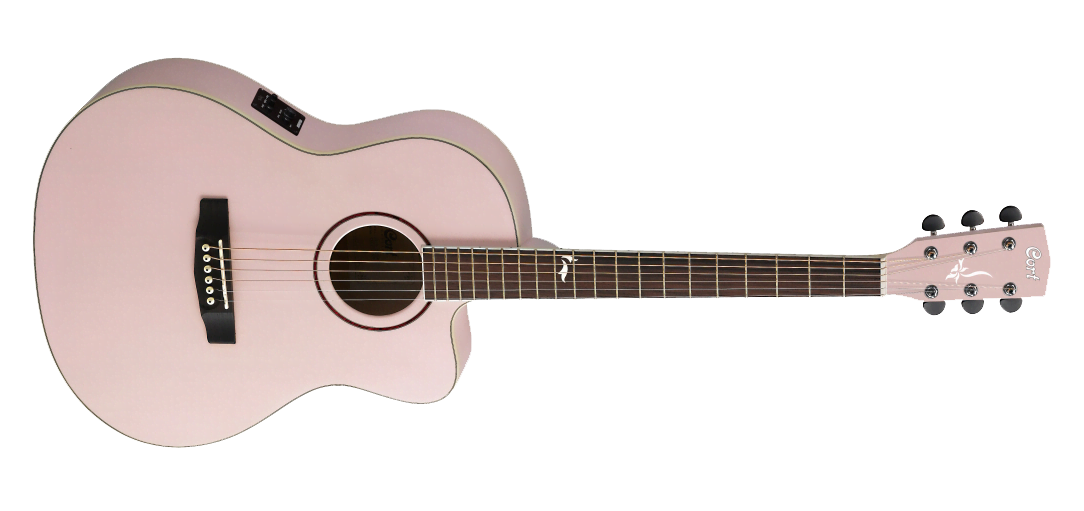 Мензура 643 мм. Гитара Cort JADE2F комплектуется пьезозвукоснимателем Sonicore с предусилителем Fishman Isys Plus. Цвет гитары Pale Pink Metallic.