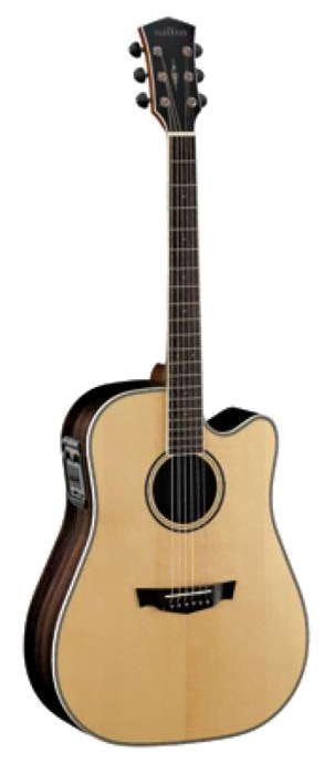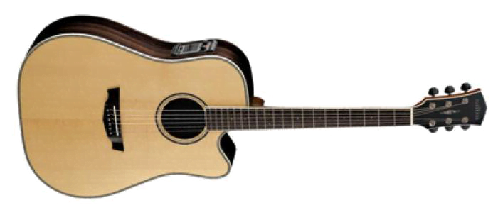 PW-560 NAT электроакустическая гитара с вырезом с чехлом, корпус дредноут, цельный палисандр, верх цельная ель, гриф красное дерево/палисандр, цвет натуральный лак