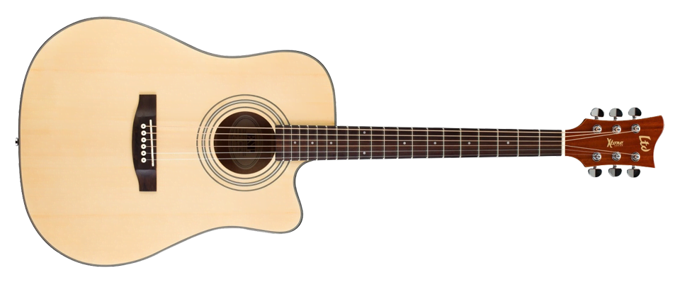 XTONE DC-5E NAT Электроакустическая гитара с датчиком и эквалайзером ESP 2-Band Preamp, корпус dreadnought красное дерево с верхом из ели, , цвет натуральный