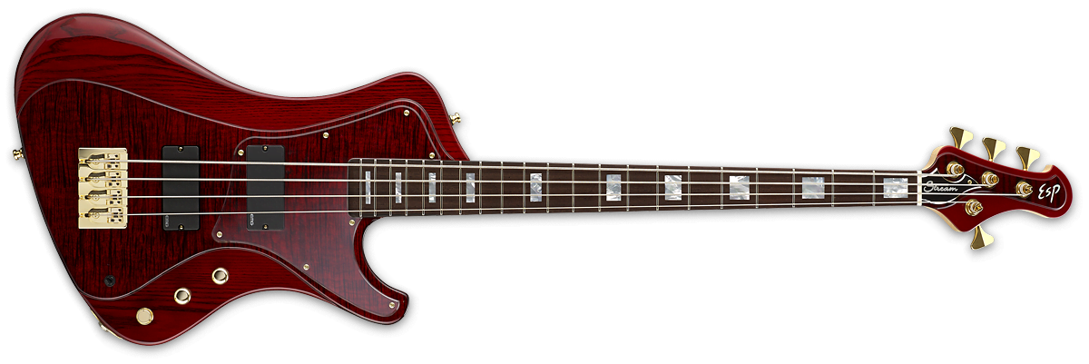 ESP STREAM CTM STBC Бас-гитара 4-струны, корпус ясень/клен, привинч. гриф (7ч.) клен/орех/падуак/палисандр, 34", EMG 35Jb/EMG 35P-4n, Hipshot "A" Style Bridge, 21 лада, цвет See Thru Black Cherry