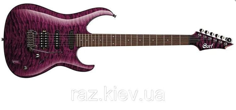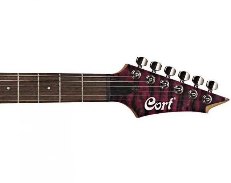 Корпус гитары выполнен из красного дерева с топом из стеганого клена. Для изготовления грифа конструкторы фирмы Cort применили твердый канадский клен. Накладка грифа выполнена из традиционного для качественных гитар дерева - палисандра. В накладке лады маркируются белыми точками.