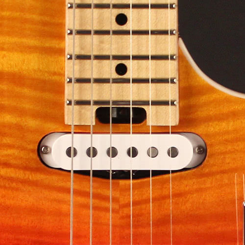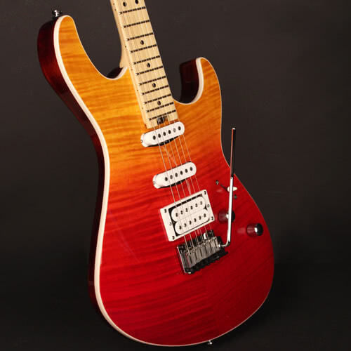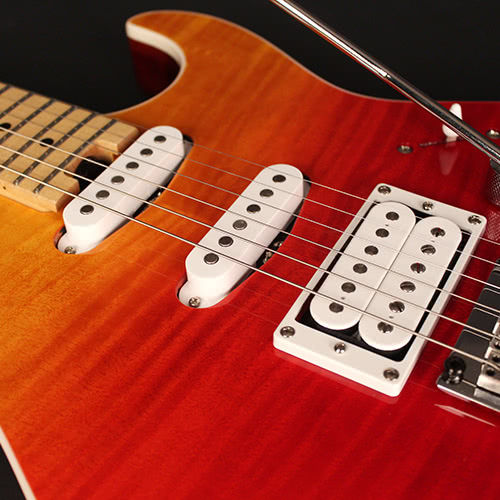 Ольховый корпус дает насыщенный звук, а добавление кленового топа добавляет к нему не только внешнюю красоту, но также обогащает звучание высокими частотами и яркостью. Другими словами, ольха обеспечивает классическое звучание гитары, а клен добавляет к нему элемент современности. Это проверенная временем комбинация, благодаря которой гитара звучит здорово и при этом универсально. Учитывая тот факт, что гриф является ключевым компонентом формирования звука гитары, нельзя обходить стороной его качество. Гриф из твердого канадского клена обеспечивает как стабильность, так и сочный яркий оттенок звучания с выраженной верхней серединой. Окрас головки в цвет корпуса создает солидный внешний вид гитары.