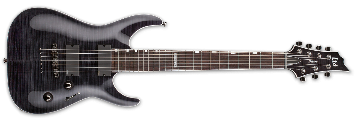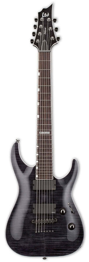 LTD H-1007 STBLK электрогитара 7-ми струнная, корпус махогани/клен, вклеенный гриф клен/палисандр, 25.5", EMG-81-7 b/707 n, Hipshot w/ String Thru, 24 лада, цвет See Thru Black