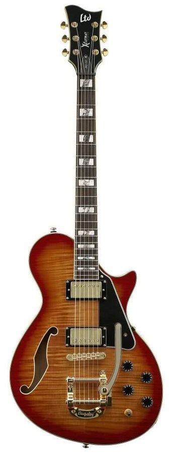 LTD PC-1V ACSB полуакустическая гитара, кр.дерево/клен, вклеенный гриф 24,75", S.Duncan APH-1, Bigsby, 22 лада, цвет Amber Cherry Sunburst