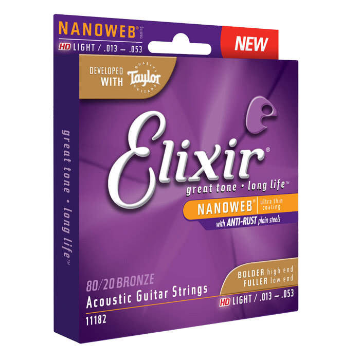 Elixir 11182 80/20 Bronze HD NanoWeb струны для 6-струнной акустической гитары, толщина .013 - .053, Light