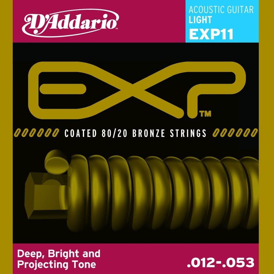 J.D.Addario EXP11 Coated 80/20 Bronze струны для 6-струнной акустической гитары, толщина .012 - .053, Lite Tension