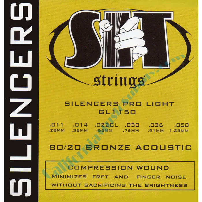 GL1150 Silencer 80/20 Acoustic Pro Light струны для акустической гитары толщина .011 - .050, обмотка полуплоская для предотвращения нежелательного шума при игре
