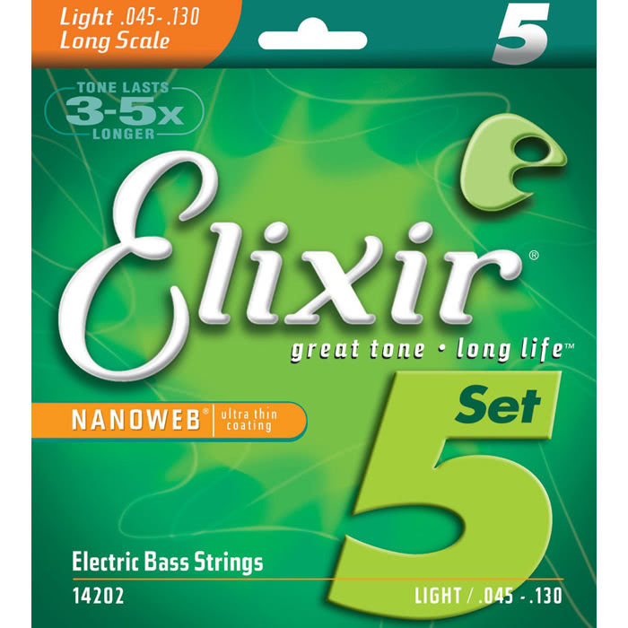 Elixir 14202 Bass Nickel Plated Steel NanoWeb струны для 5-струнной бас-гитары, 45-130