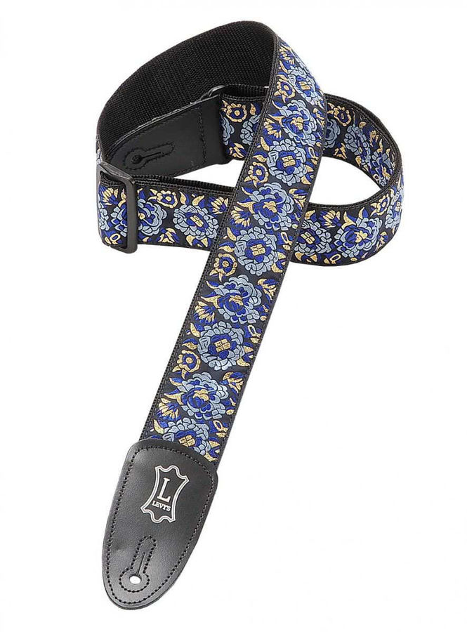 Высококачественный ремень для гитары, внутренняя часть выполнена из полипропилена, снаружи ткань с рисунком азиатского жакардового переплета, концевики кожаные, длина ремня регулируется до максимально 137 см.