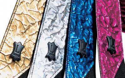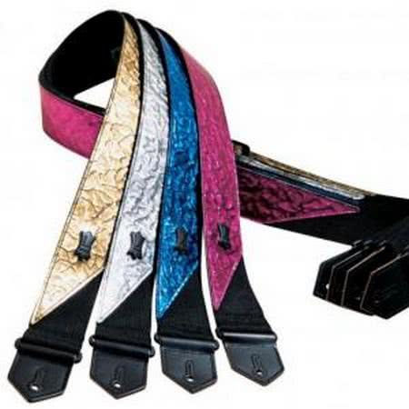 M8HM-GLD гитарный ремень, верх виниловый с рисунком кованного металла, ширина 5 см, двухцветный черный с бирюзовым, нижняя сторона полипропилен, кожанные наконечники, регулировка длины до 168 см.