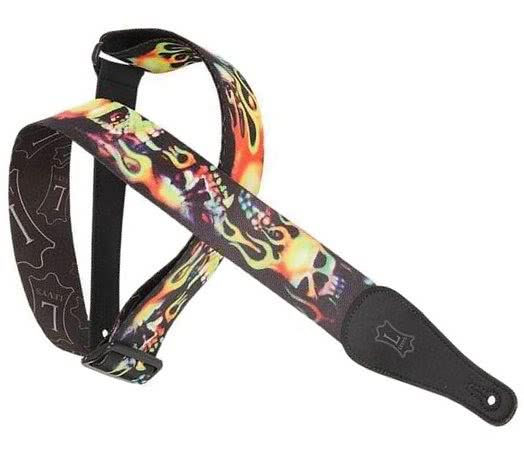 MPA2-006 REG гитарный ремень, полиэстер, ширина 5 см, рисунок горящий огонь с многоцветными языками пламени, наконечники кожанные, регулировка длины до 152 см.