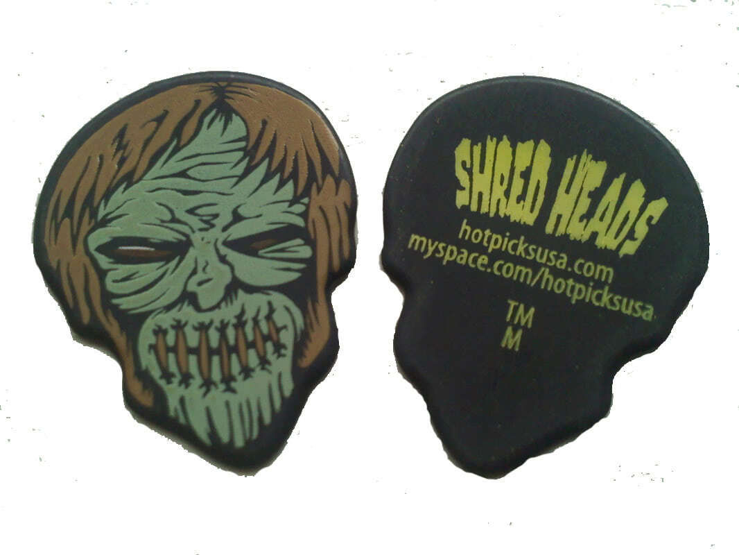 HOTPICKS Blonde медиатор фигурный, серии Shred Heads, рисунок голова человека с зашитым ртом, Medium, бренд Hotpicks.