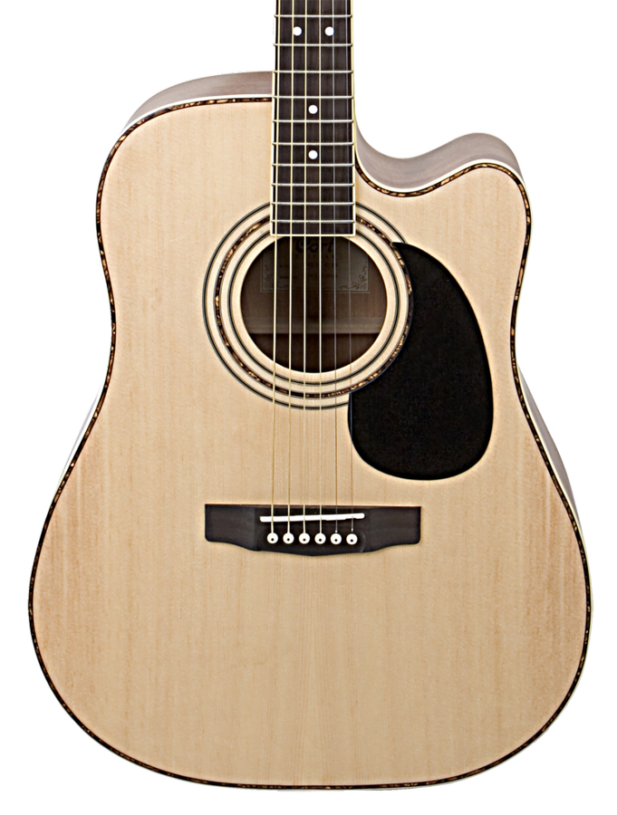 Корпус гитары AD880CE NS имеет форму дредноут с вырезом и изготовлен из красного дерева а верх из ели.