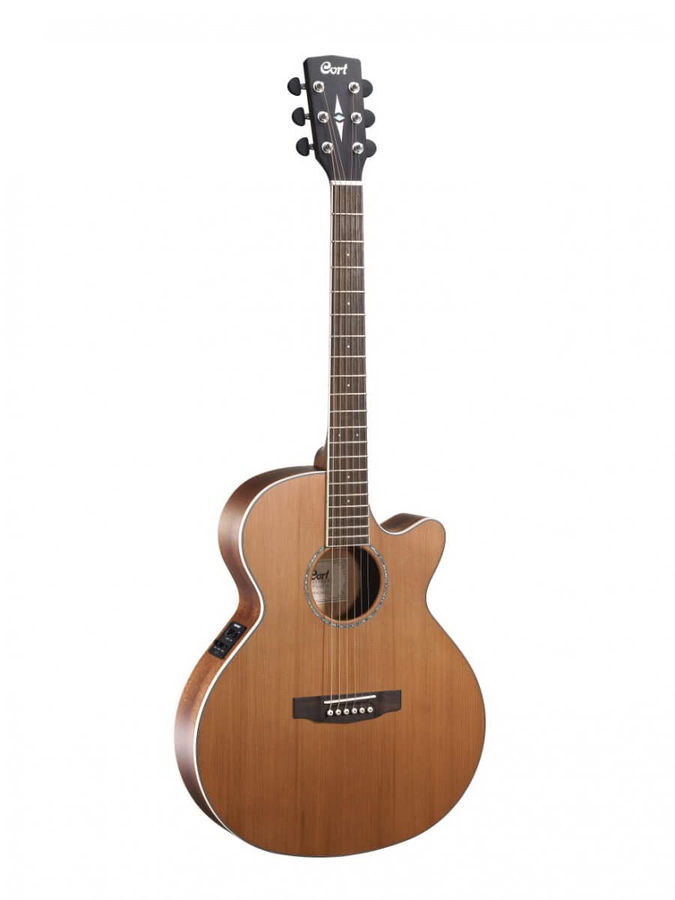 SFX-CED NS электроакустическая гитара, корпус SFX красное дерево, верх цельный кедр, гриф - красное дерево, накладка палисандр, мензура 25,3", электроника Cort CE304T, цвет натуральный матовый.