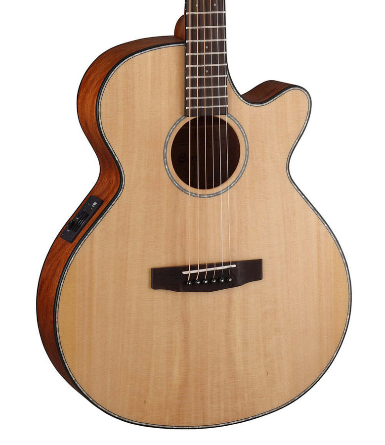 Верхняя дека корпуса электроакустической гитары Cort SFX-E NS выполнена из цельной ели. Нижняя дека и обечайка из красного дерева. Это обеспечивает гитаре превосходное звучание, которое с годами только улучшается.