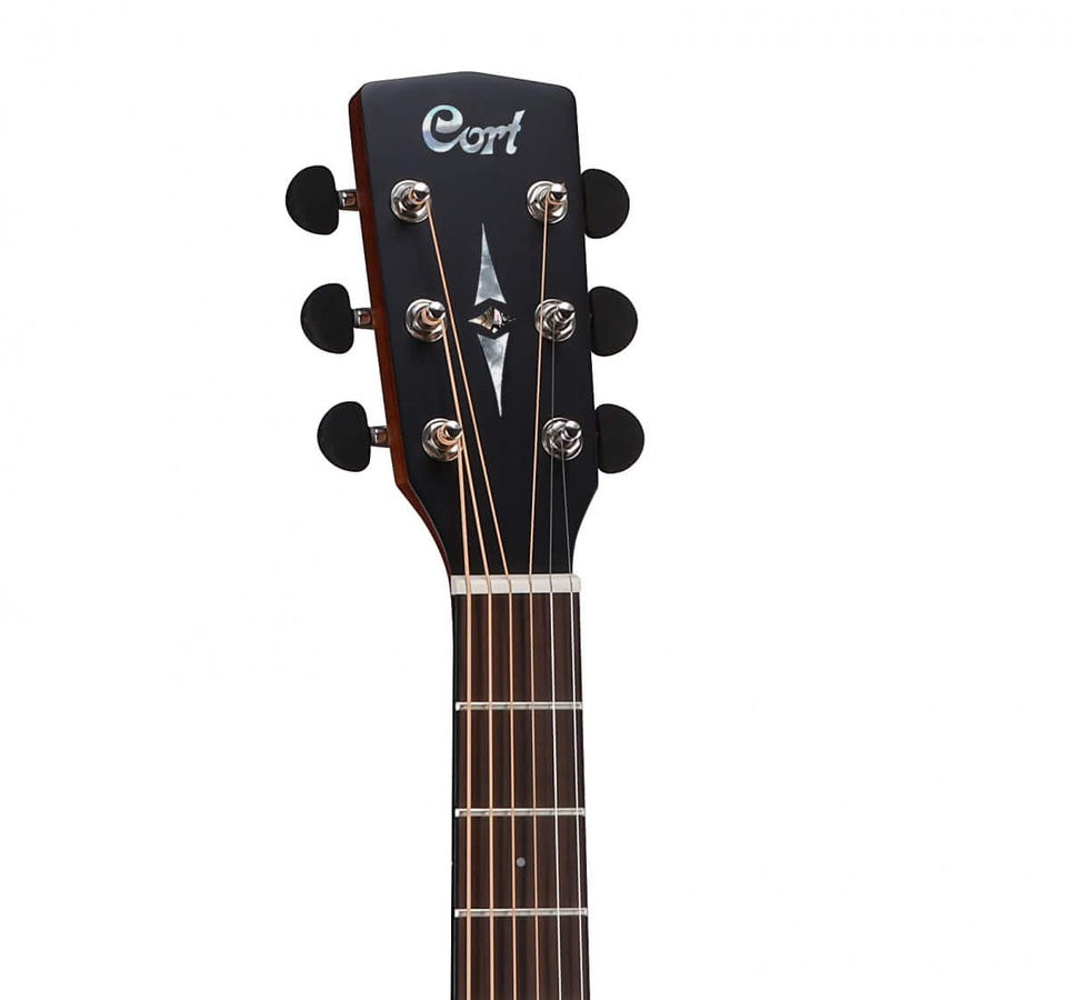 Гриф Cort SFX-E NS с палисандровой накладкой и черной окантовкой, сделан из красного дерева. На гитаре установлены литые никелированные колки,с черными ручками и палисандровый бридж.