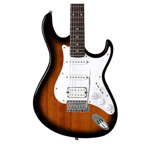 G110-2T электрогитара, корпус агатис, привинченный кленовый гриф, накладка палисандр, 22 лада, S-S-H, бридж тремоло на 6 винтах, фурнитура хром, мензура 25,5'', цвет 2 Tone burst.