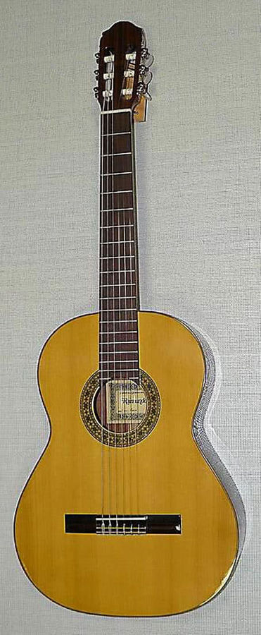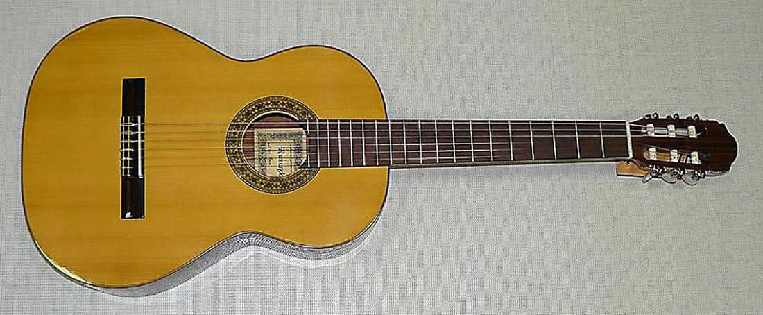 Настоящая испанская классическая гитара с ярким и хорошо читаемым звучанием. Верхняя дека изготовлена из массива кедра. Нижняя дека и обечайка сделаны из красного дерева.