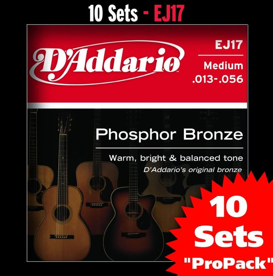 J.D.Addario EJ17-10P Phosphor Bronze 10 комплектов струн для акустической гитары, толщина .013 - .056, Medium Tension